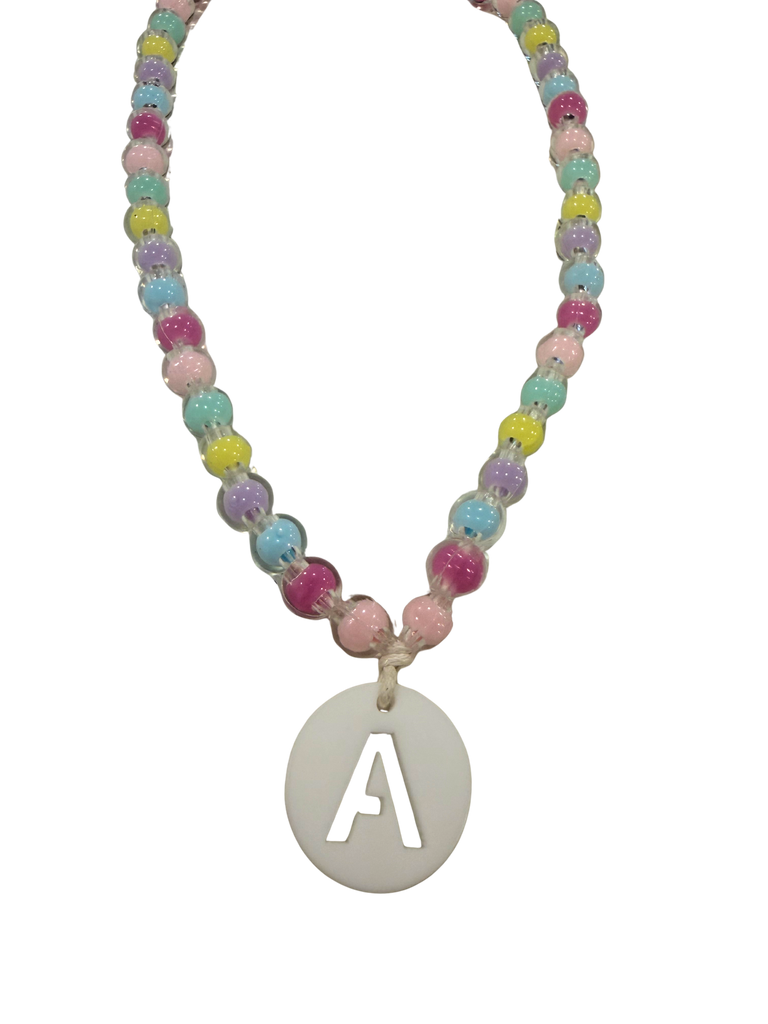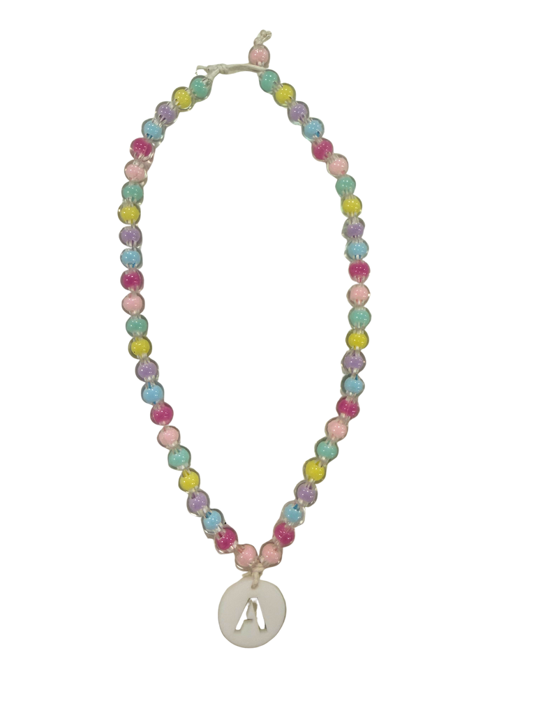 Colar de criança com 36-37cm com bolas acrílicas e fio de algodão.